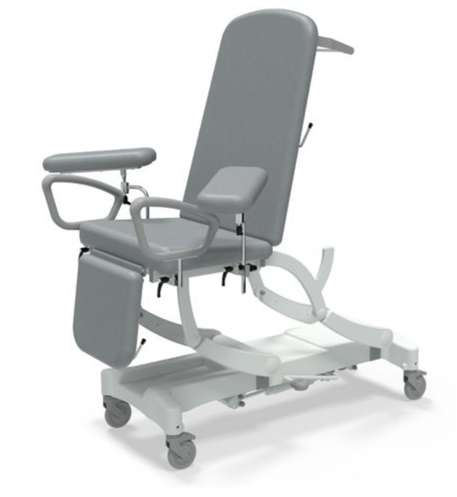 Seers Medical The CLINNOVA Phlebotomy 1 is designed for blood collection procedures. It is equipped with side buckles and adjustable upper limb supports to facilitate patient positioning and safety. Safe working load of 265kg / 583lbs Hydraulic or electric lift from 46 to 95 cm. Electric models raise in just 15 seconds Gas-assisted backrest Retractable, independently locking or centrally locking castors 70 cm width Easy-clean upholstery Reclining seat for patient comfort and safety Pair of multi-adjustable armrests and arm loops Clearance under frame for access to mobile hoist Choice of upholstery colours Technical data Ref. NV9466P-PRM-1WH-LG Warranty: 1 year