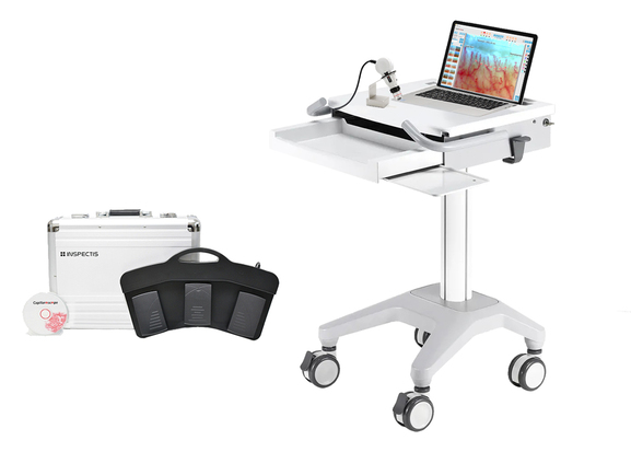 Inspectis Complete System provided with a laptop, INSPECTIS© CAP Pro software, and a medical cart. Included in the package: